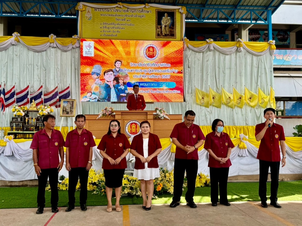 วิทยาลัยอาชีวศึกษาพิจิตร นำโดย นายประเสริฐ วงศ์โปธา ผู้อำนวยการวิทยาลัยฯ นายณัฐพงศ์ ศรีโพธิ์ นายโชคชัย ปราโมกข์ รองผู้อำนวยการวิทยาลัยฯ พร้อมด้วยคณะครูและบุคลากรทางการศึกษาเข้าร่วมโครงการปฐมนิเทศนักเรียน นักศึกษา และโครงการประชุมผู้ปกครองเครือข่าย ปวช.1 ปวส.1 ประจำปีการศึกษา 2567 ในวันเสาร์ที่ 18 พฤษภาคม 2567 ณ ลานอเนกประสงค์ วิทยาลัยอาชีวศึกษาพิจิตร