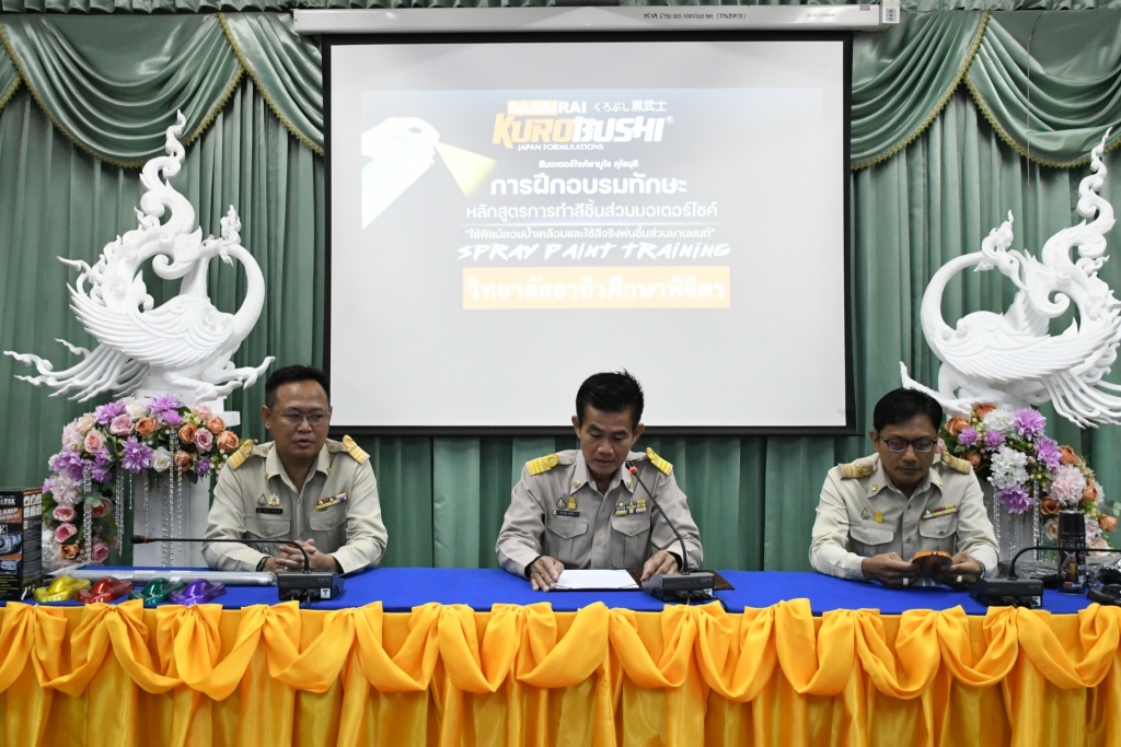 วิทยาลัยอาชีวศึกษาพิจิตร นำโดย นายประเสริฐ วงศ์โปธา ผู้อำนวยการวิทยาลัยฯ นายณัฐพงศ์ ศรีโพธิ์ นายโชคชัย ปราโมกข์ รองผู้อำนวยการวิทยาลัยฯ พร้อมด้วยคณะครูแผนกวิชาช่างยนต์เข้าร่วมพิธีเปิดโครงการฝึกเทรนนิ่งให้แก่นักศึกษาและบุคลากร โดยบริษัท เดี้ยนซ์ มาร์เก็ตติ้ง จำกัด เพื่อนำความรู้ความสามารถจากประสบการณ์ของพนักงานมาเผยแพร่ให้นักศึกษาได้เรียนรู้ สอนการใช้สีจริง พ่นรถมอเตอร์ไซค์ และสอนชุปฟิลม์ลอยน้ำให้กับนักศึกษา ณ วิทยาลัยอาชีวศึกษาพิจิตร