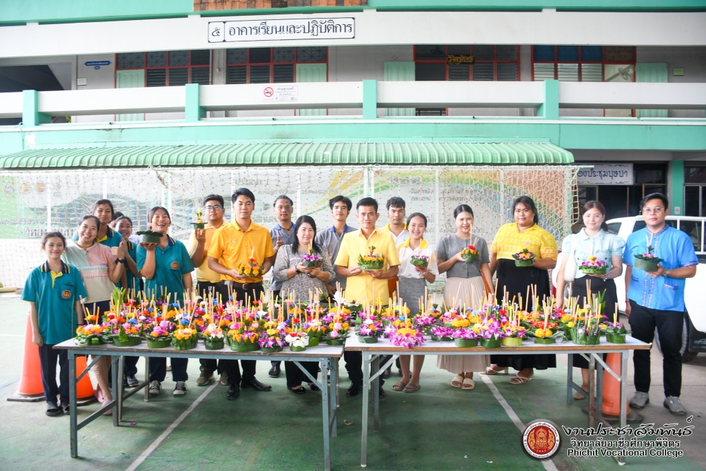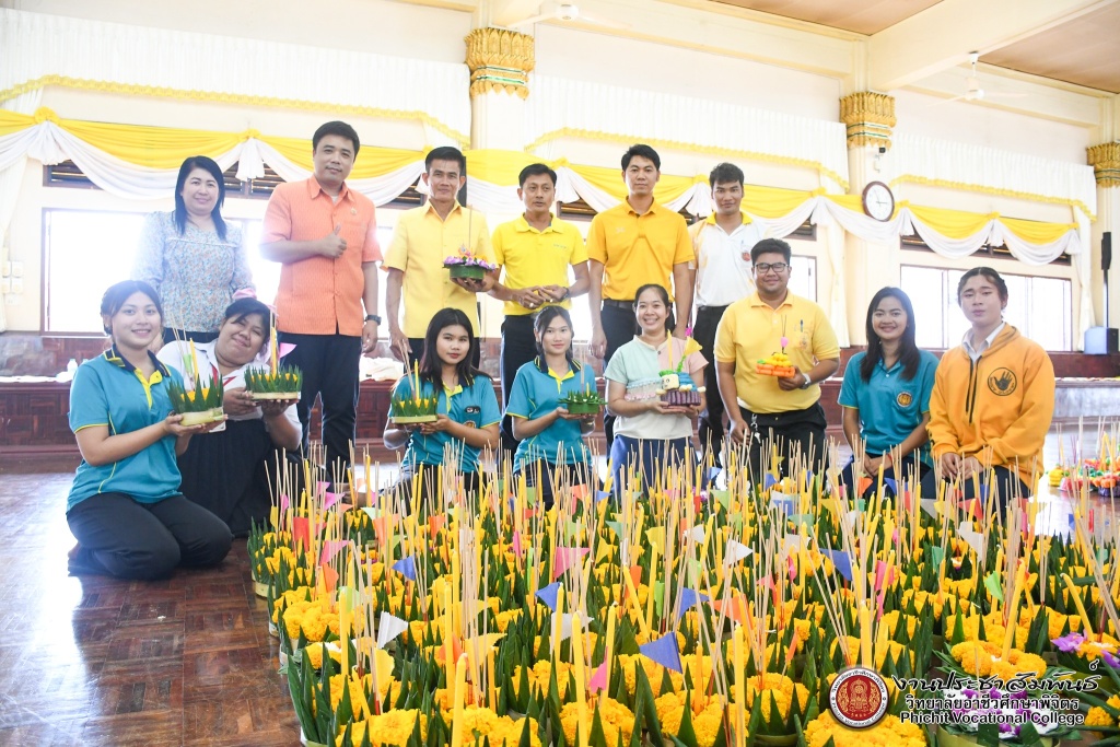 วิทยาลัยอาชีวศึกษาพิจิตร โดย นายประเสริฐ วงศ์โปธา ผู้อำนวยการวิทยาลัยฯ พร้อมด้วย นายณัฐพงศ์ ศรีโพธิ์ นายวรวิทย์ หอมวงษ์ รองผู้อำนวยการวิทยาลัยฯ คณะครู และนักเรียน นักศึกษา เข้าร่วมกิจกรรมจัดทำกระทงถวายวัดท่าหลวง พระอารามหลวง เนื่องในกิจกรรมประเพณีลอยกระทง ประจำปี 2567 เพื่อเป็นการอนุรักษ์วัฒนธรรมประเพณีอันดีงามของไทยดำรงให้สืบไป