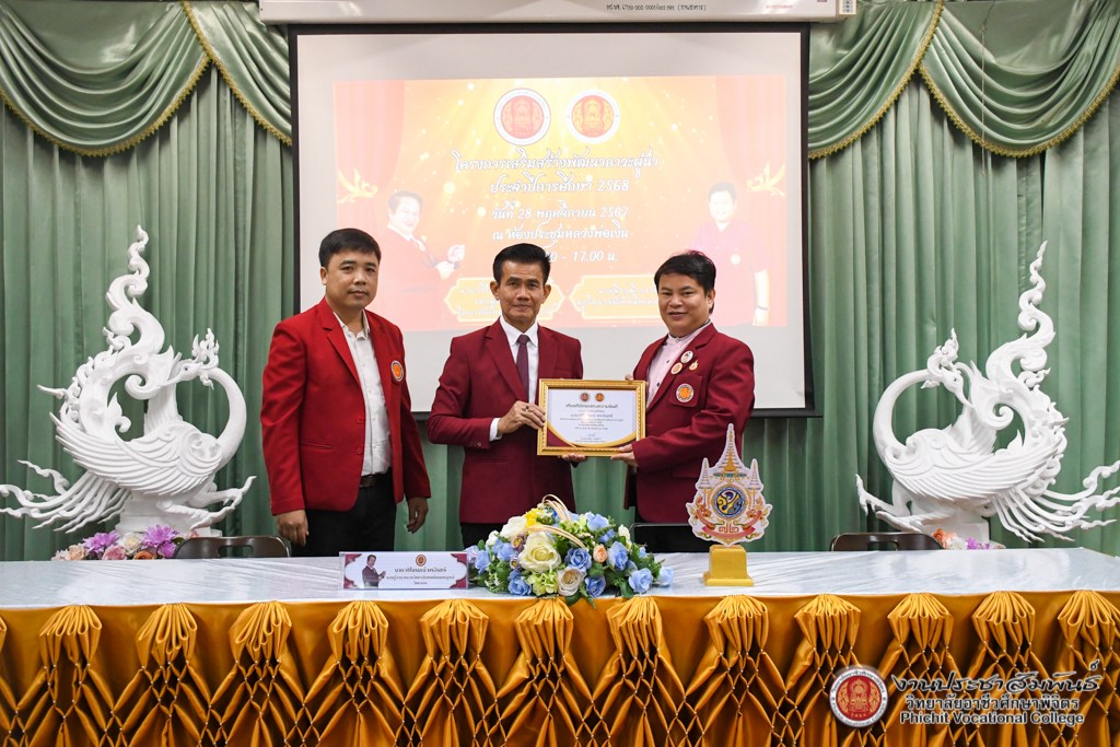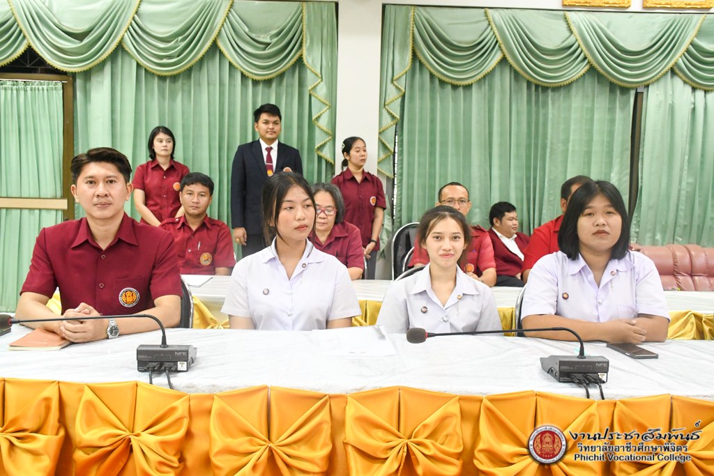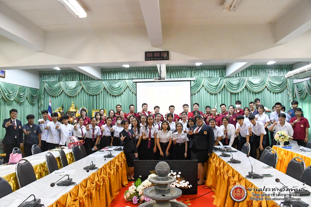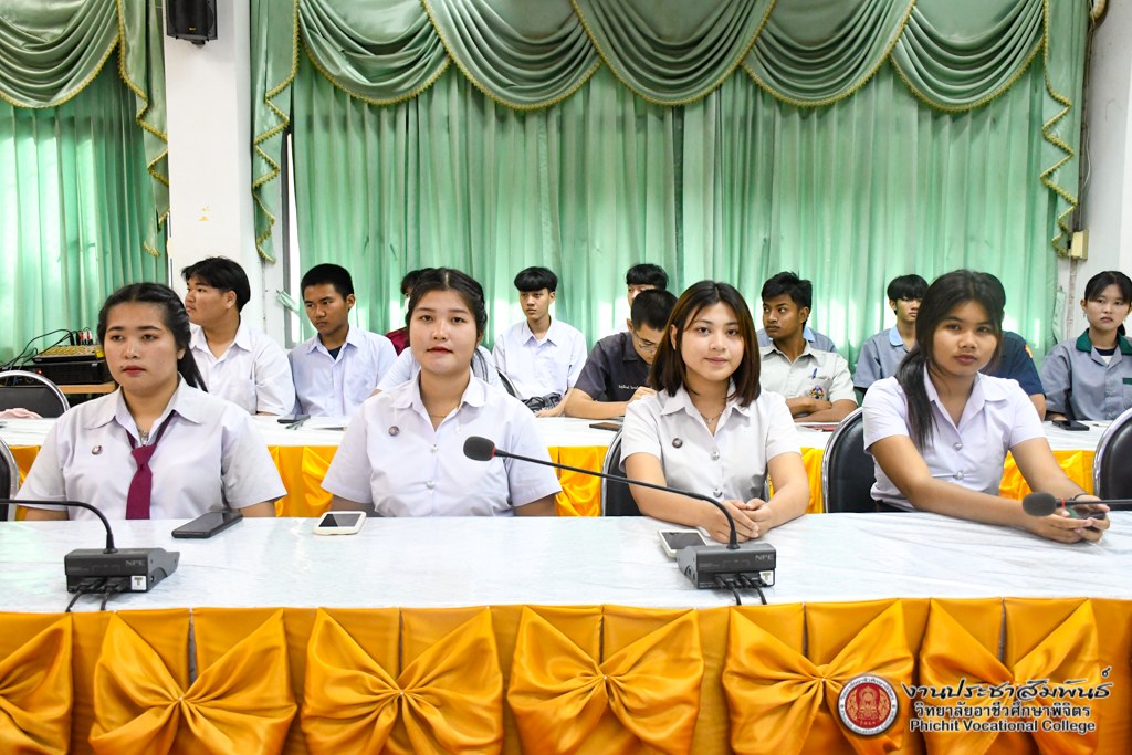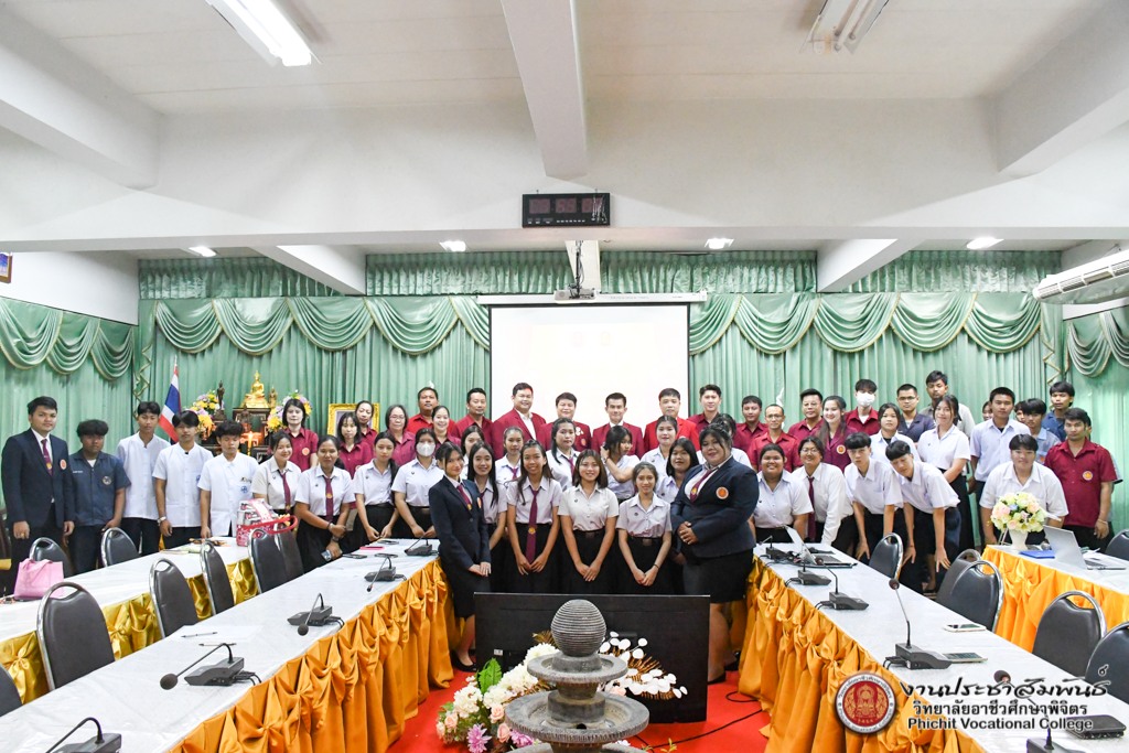 วิทยาลัยอาชีวศึกษาพิจิตร โดย นายประเสริฐ วงศ์โปธา ผู้อำนวยการสถานศึกษา พร้อมด้วย นายวรวิทย์ หอมวงษ์ รองผู้อำนวยการสถานศึกษา คณะครู นักเรียน และนักศึกษา เข้าร่วมโครงการเสริมสร้างพัฒนาภาวะผู้นำ ประจำปีการศึกษา 2568 ในวันพฤหัสบดีที่ 28 พฤศจิกายน 2567 ณ ห้องประชุมหลวงพ่อเงิน วิทยาลัยอาชีวศึกษาพิจิตร