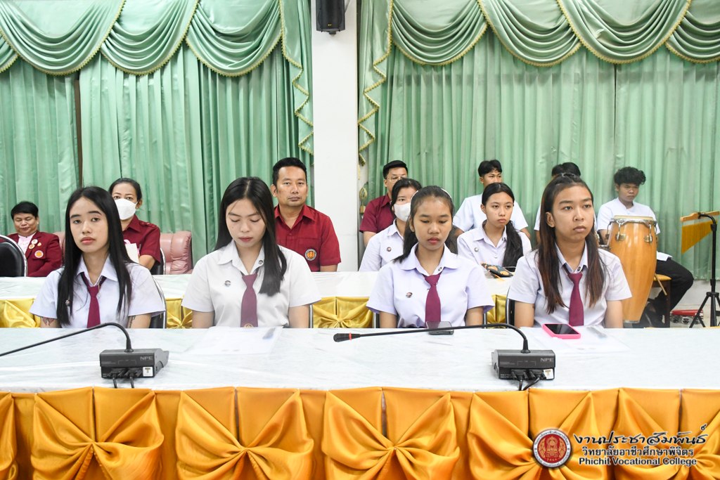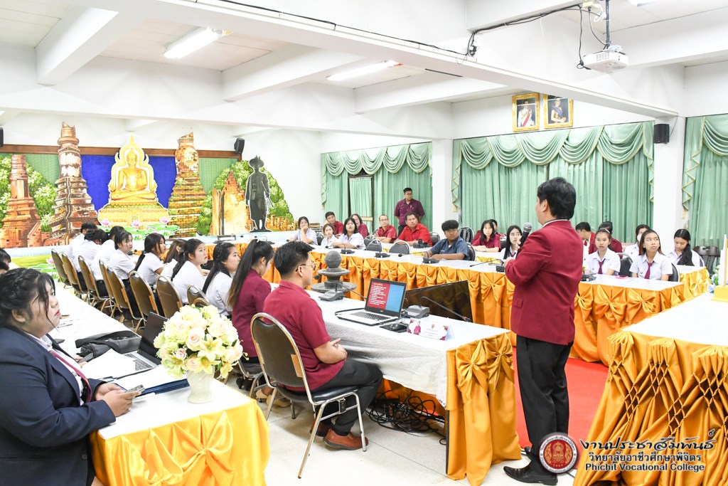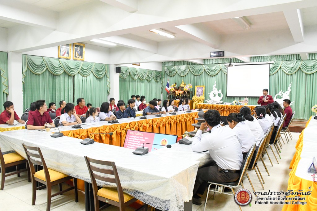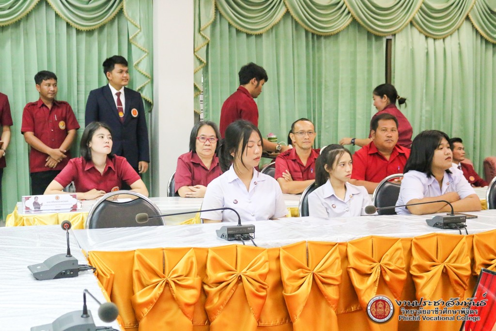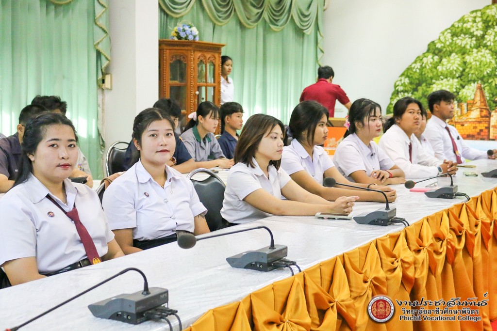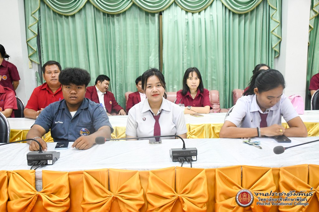 วิทยาลัยอาชีวศึกษาพิจิตร โดย นายประเสริฐ วงศ์โปธา ผู้อำนวยการสถานศึกษา พร้อมด้วย นายวรวิทย์ หอมวงษ์ รองผู้อำนวยการสถานศึกษา คณะครู นักเรียน และนักศึกษา เข้าร่วมโครงการเสริมสร้างพัฒนาภาวะผู้นำ ประจำปีการศึกษา 2568 ในวันพฤหัสบดีที่ 28 พฤศจิกายน 2567 ณ ห้องประชุมหลวงพ่อเงิน วิทยาลัยอาชีวศึกษาพิจิตร