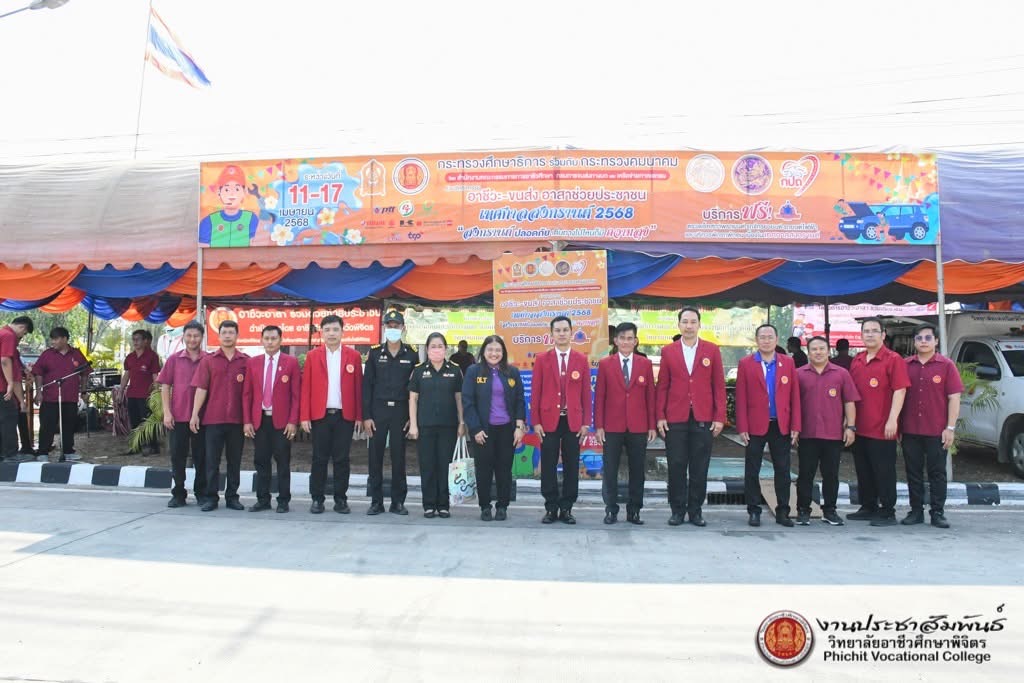 วิทยาลัยอาชีวศึกษาพิจิตร โดย นายประเสริฐ วงศ์โปธา ผู้อำนวยการสถานศึกษา นายณัฐพงศ์ ศรีโพธิ์ นายวรวิทย์ หอมวงษ์ รองผู้อำนวยการสถานศึกษา พร้อมด้วยคณะครู เข้าร่วมพิธีเปิดกิจกรรม “อาชีวะ-ขนส่ง อาสาช่วยประชาชน : เทศกาลสงกรานต์ 2568” ในวันศุกร์ที่ 11 เมษายน 2568 ณ บริเวณหน้าหมวดทางหลวงวชิรบารมี อำเภิวชิรบารมี จังหวัดพิจิตร