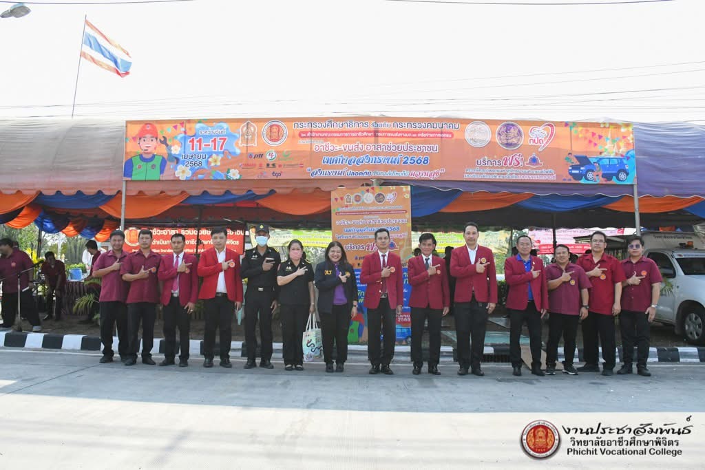 กิจกรรม “อาชีวะ-ขนส่ง อาสาช่วยประชาชน : เทศกาลสงกรานต์ 2568” ในวันศุกร์ที่ 11 เมษายน 2568 ณ บริเวณหน้าหมวดทางหลวงวชิรบารมี อำเภิวชิรบารมี จังหวัดพิจิตร