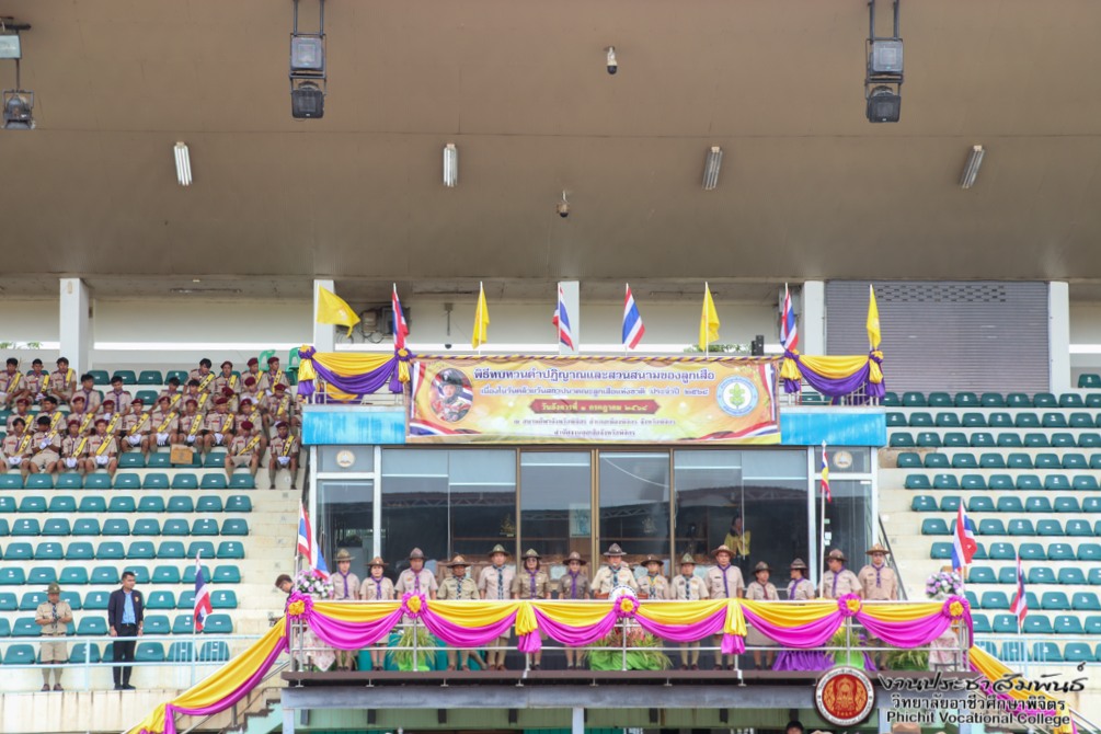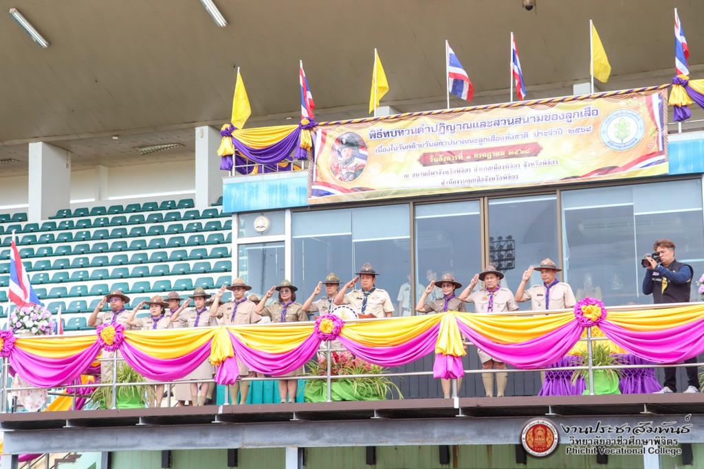 วิทยาลัยอาชีวศึกษาพิจิตร โดย นายประเสริฐ วงศ์โปธา ผู้อำนวยการสถานศึกษา มอบหมายให้ นายจำนงค์ สุนยราช พร้อมด้วยคณะครู นักเรียน และนักศึกษา เข้าร่วมพิธีทบทวนคำปฏิญาณและสวนสนามของลูกเสือ เนื่องในวันคล้ายวันสถาปนาคณะลูกเสือแห่งชาติ ประจำปี 2568 ณ สนามกีฬาจังหวัดพิจิตร