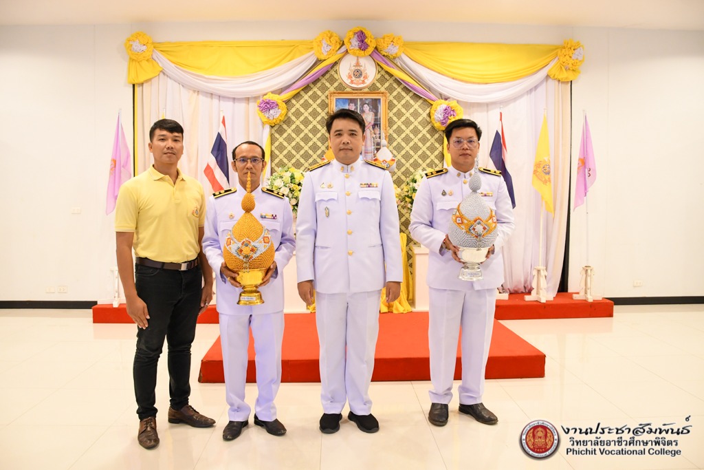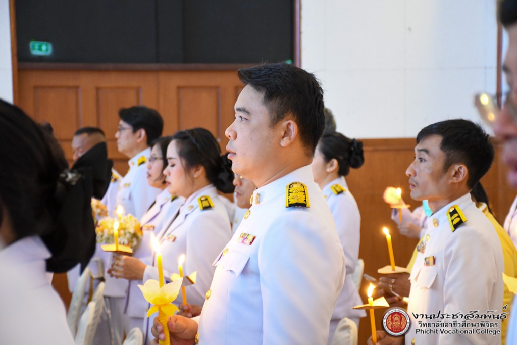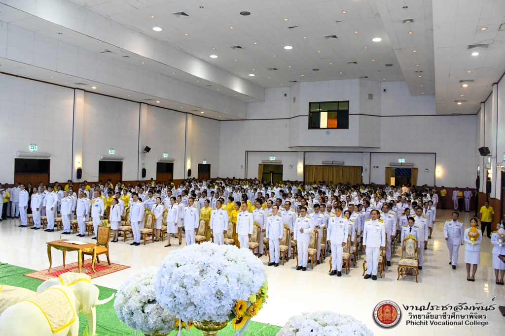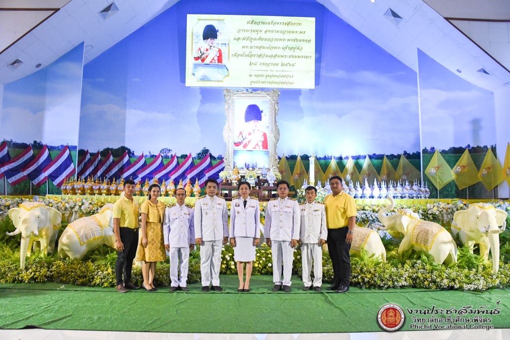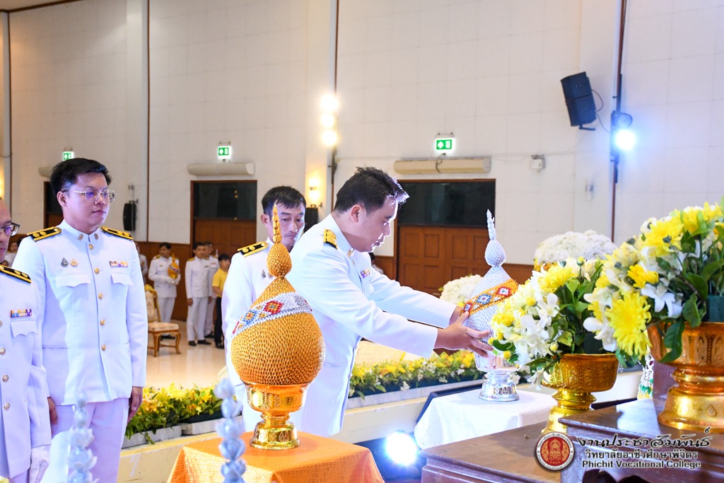 วิทยาลัยอาชีวศึกษาพิจิตร โดย นายประเสริฐ วงศ์โปธา ผู้อำนวยการสถานศึกษา มอบหมายให้ นายวรวิทย์ หอมวงษ์ รองผู้อำนวยการสถานศึกษา พร้อมด้วย คณะครู และบุคลากรทางการศึกษา ร่วมพิธีถวายเครื่องราชสักการะและวางพานพุ่ม พิธีลงนามถวายพระพรชัยมงคล และพิธีจุดเทียนถวายพระพรชัยมงคล เนื่องในวันเฉลิมพระชนมพรรษา พระบาทสมเด็จพระปรเมนทรรามาธิบดีสินทรมหาวชิราลงกรณ พระวชิรเกล้าเจ้าอยู่หัว 28 กรกฎาคม 2568 ณ หอประชุมจังหวัดพิจิตร ศูนย์ราชการจังหวัดพิจิตร