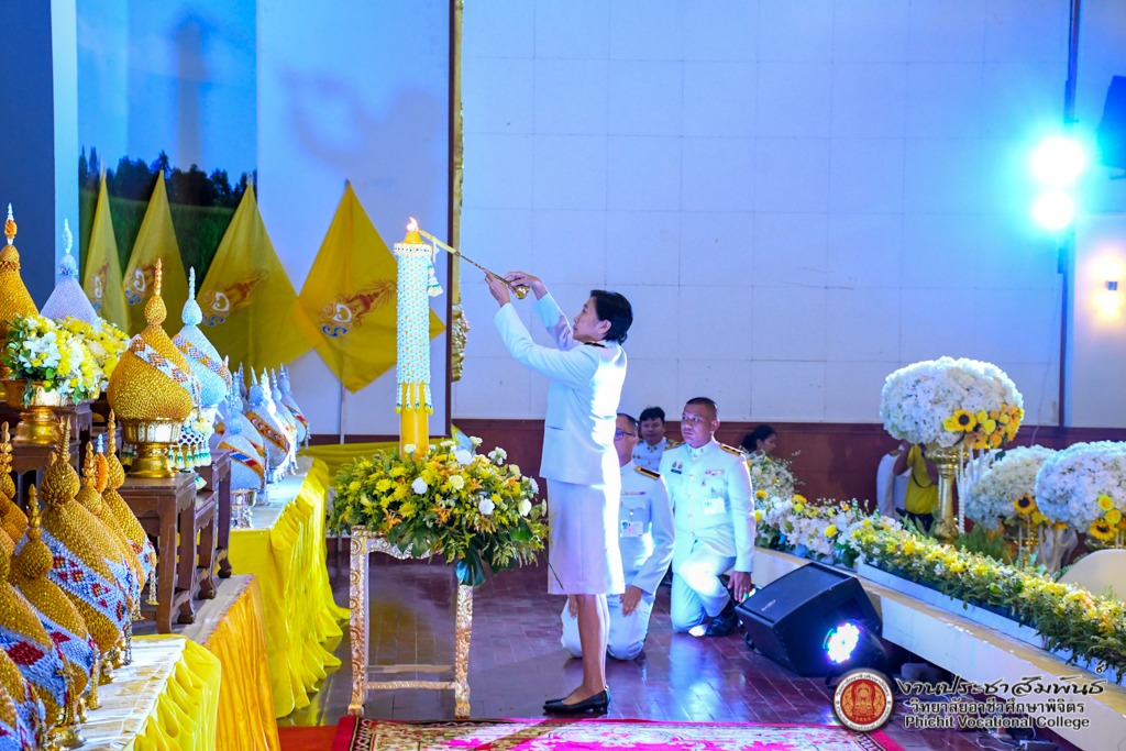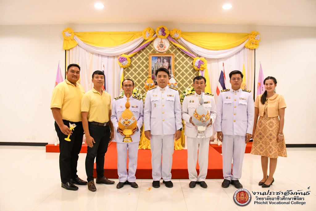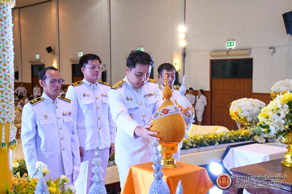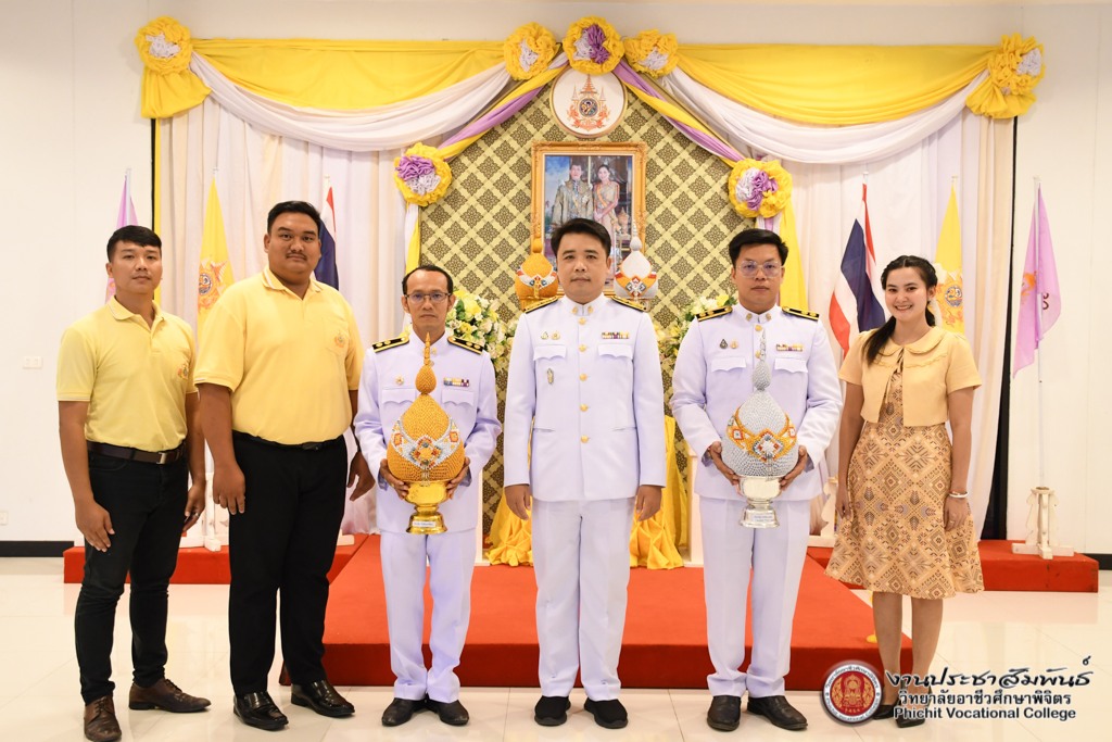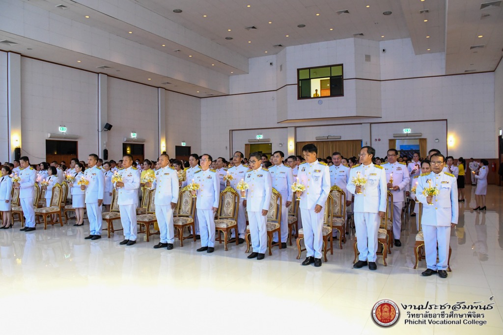 วิทยาลัยอาชีวศึกษาพิจิตร โดย นายประเสริฐ วงศ์โปธา ผู้อำนวยการสถานศึกษา มอบหมายให้ นายวรวิทย์ หอมวงษ์ รองผู้อำนวยการสถานศึกษา พร้อมด้วย คณะครู และบุคลากรทางการศึกษา ร่วมพิธีถวายเครื่องราชสักการะและวางพานพุ่ม พิธีลงนามถวายพระพรชัยมงคล และพิธีจุดเทียนถวายพระพรชัยมงคล เนื่องในวันเฉลิมพระชนมพรรษา พระบาทสมเด็จพระปรเมนทรรามาธิบดีสินทรมหาวชิราลงกรณ พระวชิรเกล้าเจ้าอยู่หัว 28 กรกฎาคม 2568 ณ หอประชุมจังหวัดพิจิตร ศูนย์ราชการจังหวัดพิจิตร